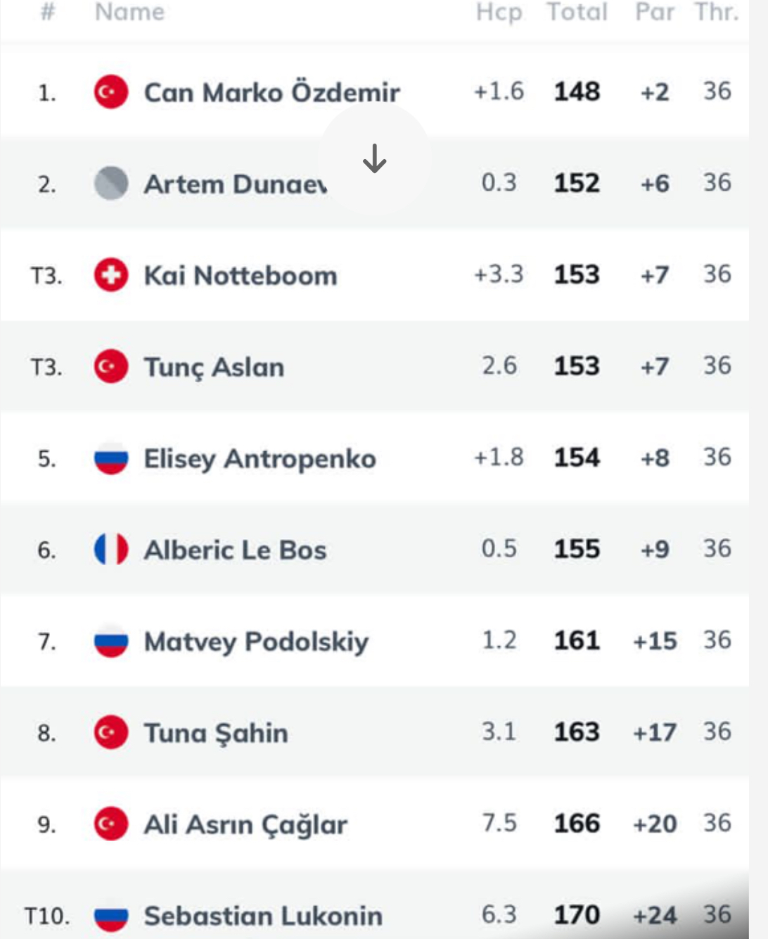 У юниоров в мужском зачете второе место занял Артем Дунаев. Елисей Антропенко с результатом +5 занял пятое место. Матвей Подольский на 7-ом месте, Себастьян Луконин разделил 10-ю строчку турнирной таблицы.