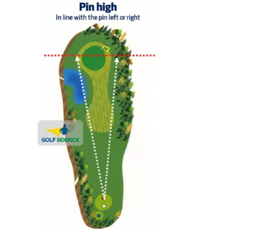 Pin High означает, что ваш мяч остановился на том же расстоянии от вас, что и расположение лунки. Вот хорошая иллюстрация этого «радостного» события: