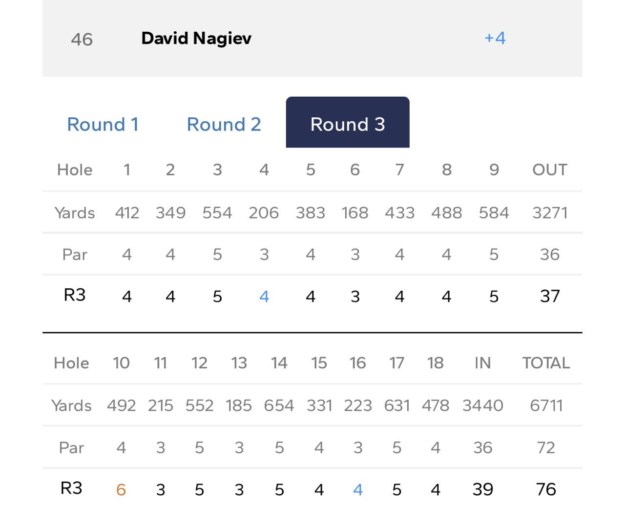 Спортсмен Московской области Давид Нагиев завершил турнир с общим результатом +4 и занял 46 место.