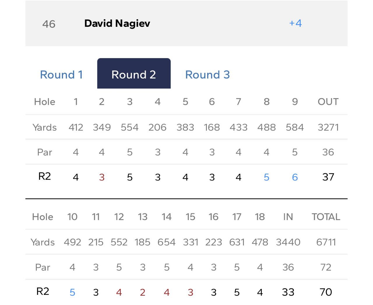 "Хорошо начал, но в середине случился коллапс — три богги подряд. После этого прохождение ката казалось невозможным, но решил не сдаваться и достойно закончить игру. В итоге получилась серия из четырёх берди подряд и несколько сложных пар-сэйвов, что помогло попасть в финальный раунд."