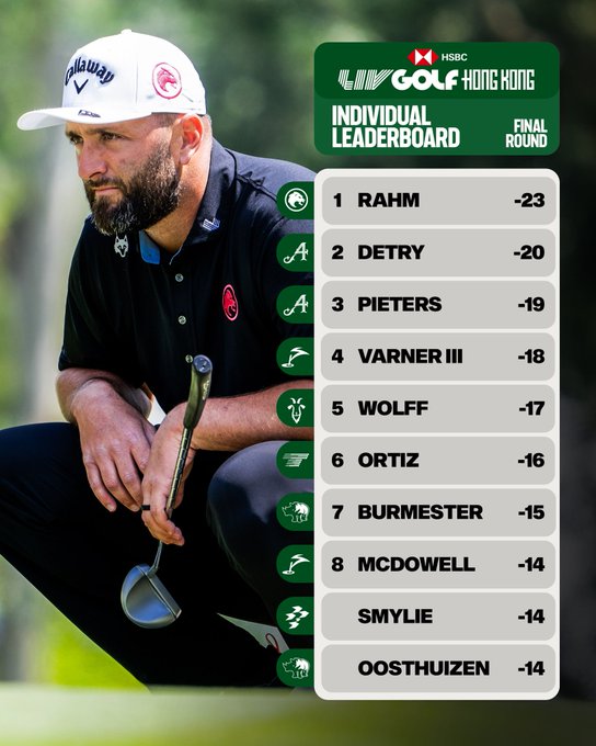 Вторую строчку единолично оккупировал Томас Детри (Thomas Detry), которому Рам помог на этой неделе добраться в Hong Kong. Еще один Томас (Thomas Pieters) финишировал на третьем месте. Оба бельгийца выступают в команде Дастина Джонсона (Dustin Johnson) 4 Aces, которая праздновала заслуженный триумф в командном зачете. Следующий старт лиги состоится в Сингапуре уже на следующей неделе.