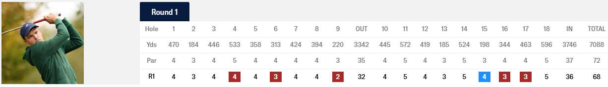 В стартовом раунде действующий чемпион России Егор Ерошенко прошел поле на два удара лучше пара и делит Т51 турнирной таблицы.