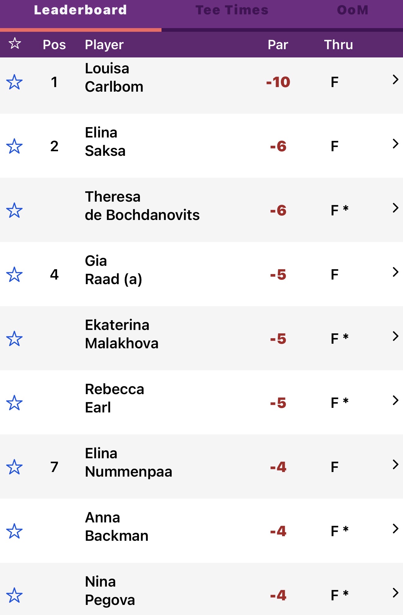 С результатом минус 5 и с отставанием от лидера в пять ударов Екатерина Малахова делит четвертую строчку турнирной таблицы.