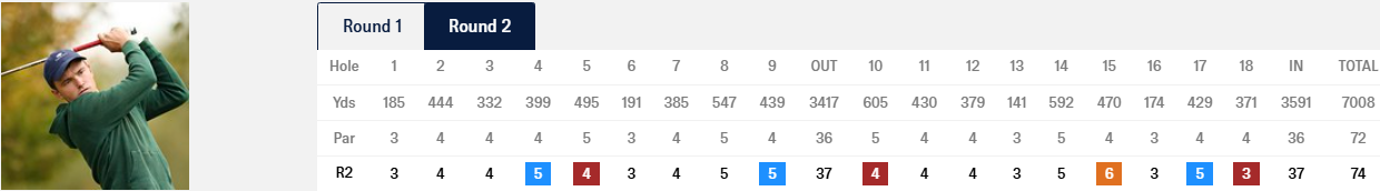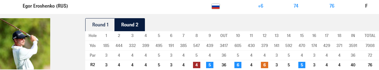 Егор Зотов уверенно провел раунд и прошел поле за 74 удара. Со счетом +9 он разделил Т88 турнирной таблицы.