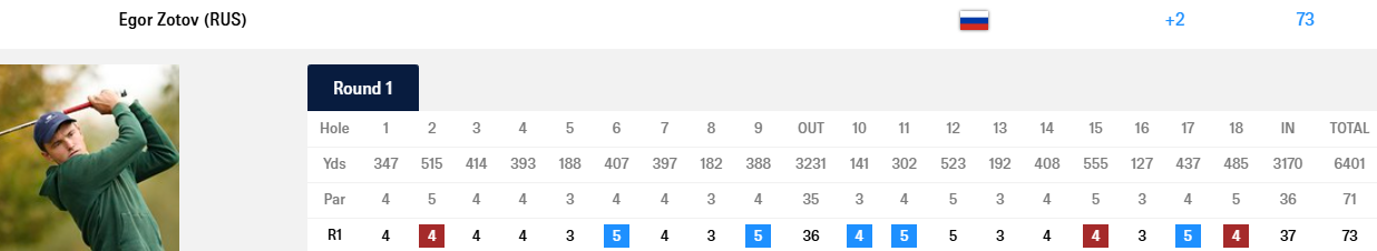 Егор Зотов сделал три берди при пяти богги.