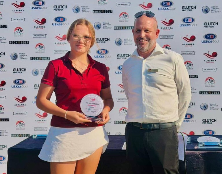 Александра Сивова, член сборной команды Московской области, кмс, #906 мирового любительского рейтинга WAGR. Сезон 2025 года был успешным для Александры: победительница 14TH Golf Mad Junior Open, победительница Кубка президента АГР, автор рекордного счета минус 7 на Кубке России 2025 года, а также многократный призер этапов ДЮТ. И вот новая вершина - Ras Al Khaimah (RAK) Amateur Open.