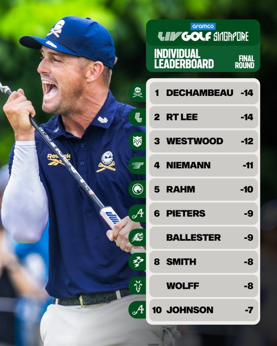LIV Golf Singapore: Брайсон Дешамбо побеждает в плей-офф