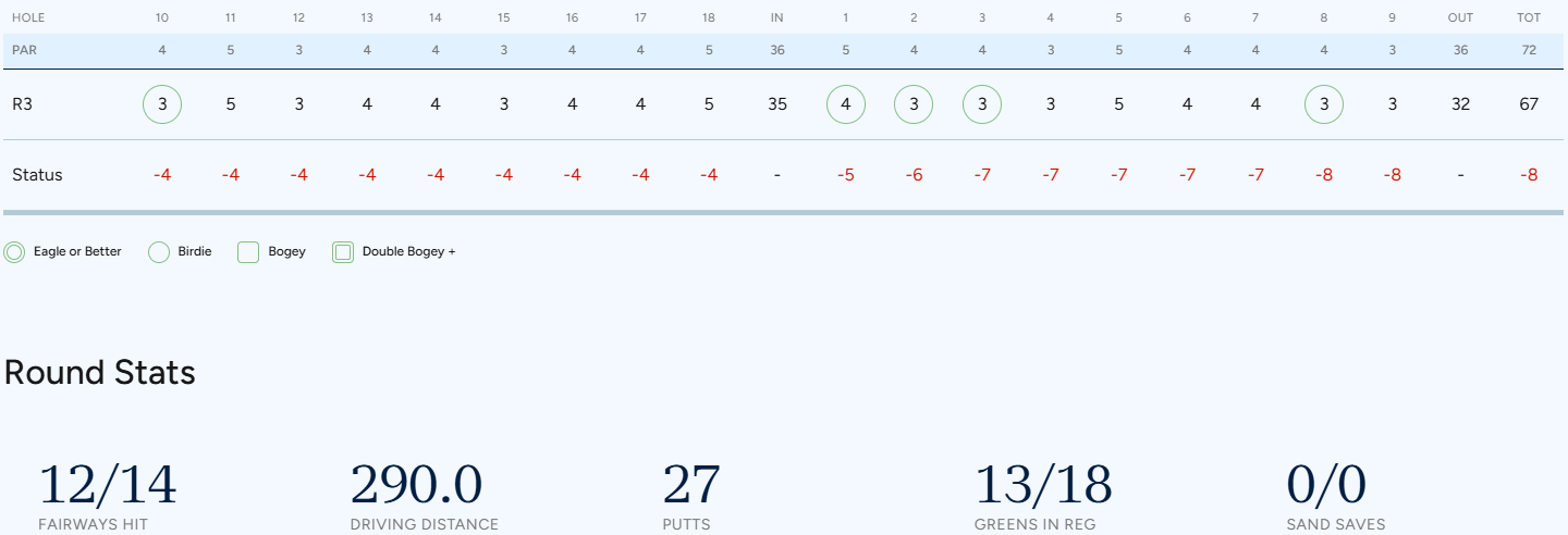 Третий раунд Наталия Гусева начала с берди и сделала по ходу раунда еще четыре не допустив при этом ни одной ошибки.