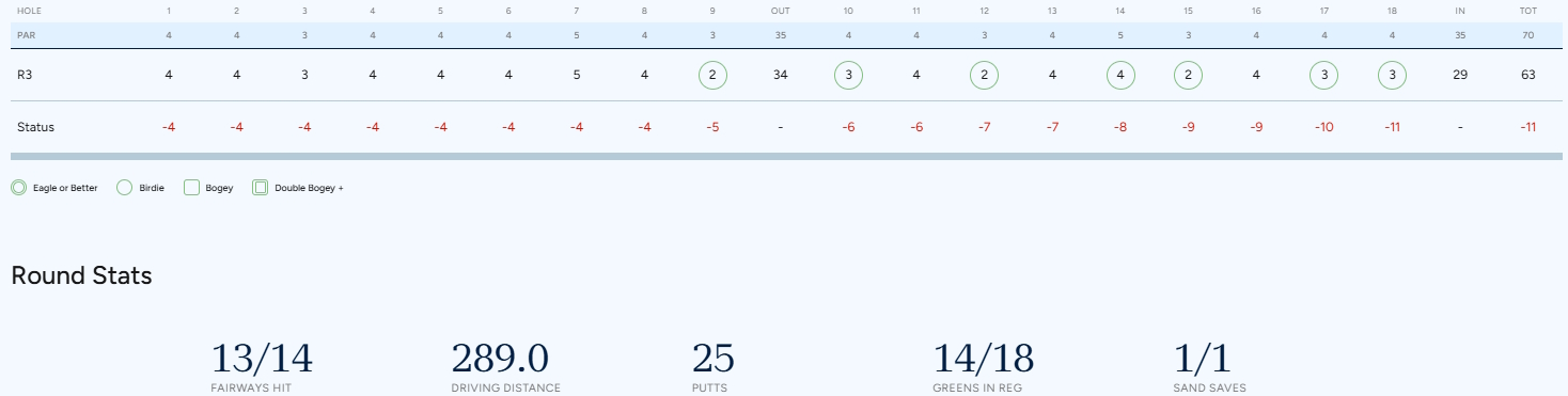 За время выступления Наталии Гусевой в высшем американском дивизионе начиная с 2024 года это лучший ее раунд. А также минус 7 - это лучший счет дня на турнире!