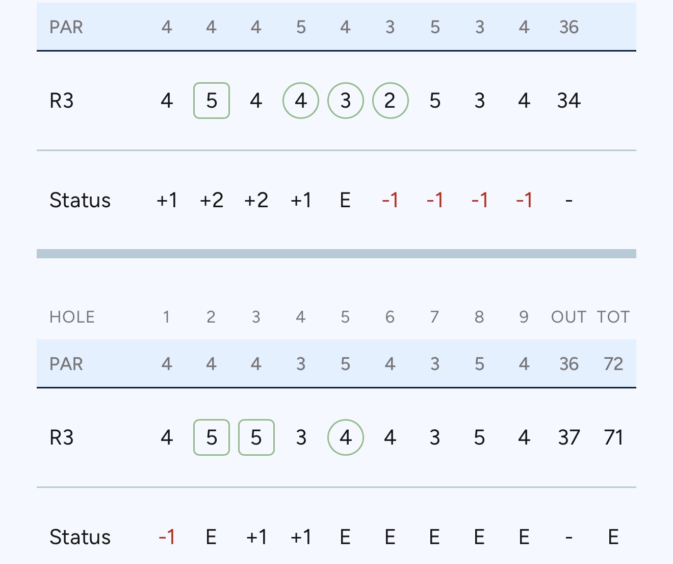 Наталия Гусева стабильно и уверенно провела раунд. Она сделала четыре берди и три богги и с общим счетом пар делит Т45 турнирной таблицы.