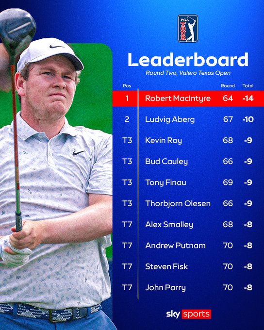Роберт Макинтайр (Robert MacIntyre) решил принять участие в турнире Valero Texas Open, чтобы наилучшим образом подготовиться к выступлению на предстоящем мейджоре Masters. И пока дела у шотландского гольфиста идут прекрасно. В концовке второго раунда Роберт выдал результативную серию из четырех бёрди на пяти лунках, что позволило ему захватить единоличное лидерство с отрывом в те самые четыре удара от ближайшего преследователя. На второй строчке уикенд встретит Людвиг Оберг (Ludvig Åberg), выступавший в одной группе с Макинтайром. Людвиг также выдал прекрасный раунд и украсил свою счетную карточку иглом, но в самой концовке юный швед слегка «смазал» свое выступление, допустив богги.