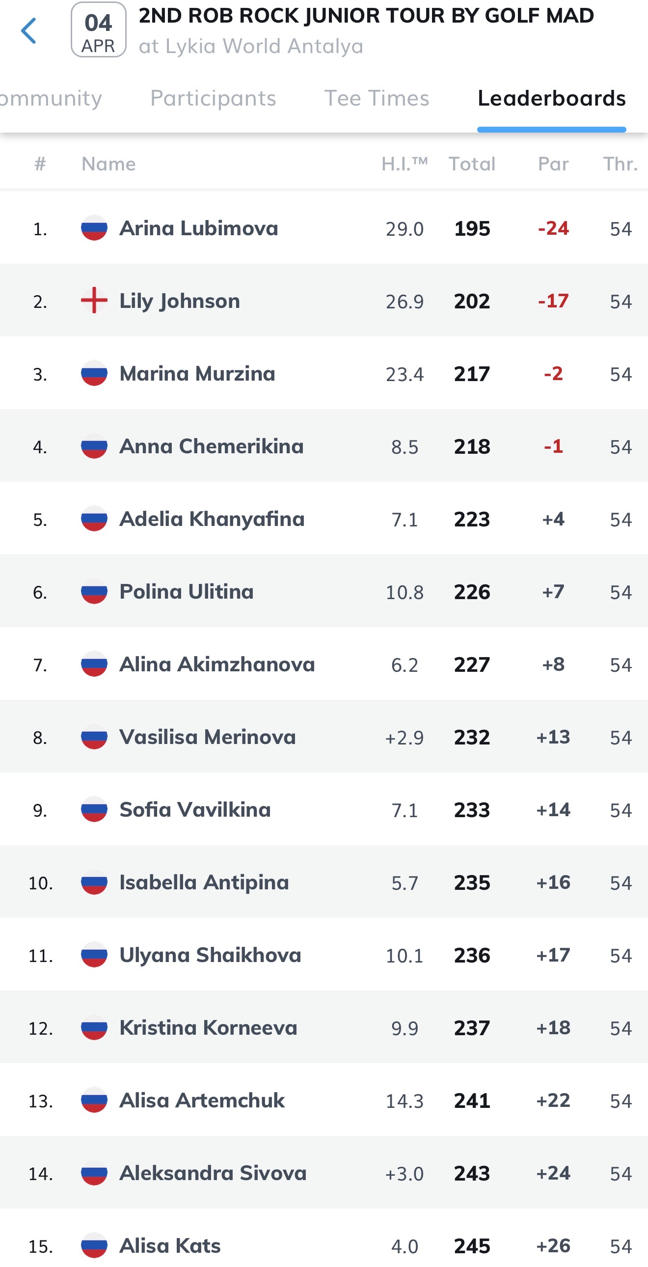 В Анталии на поле Lykia Links Golf Club с 9 по 11 апреля проходил юниорский турнир II Robert Rock Junior Tour by Golf Mad.