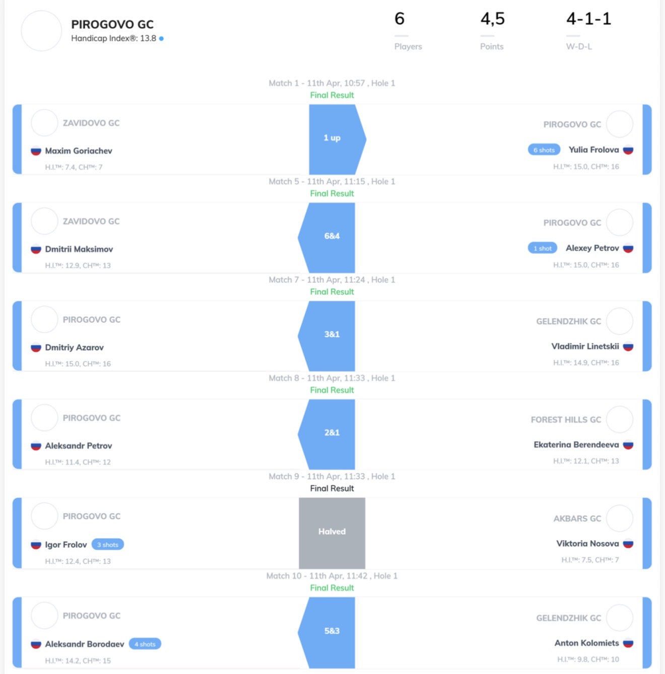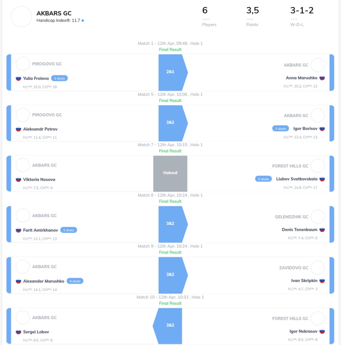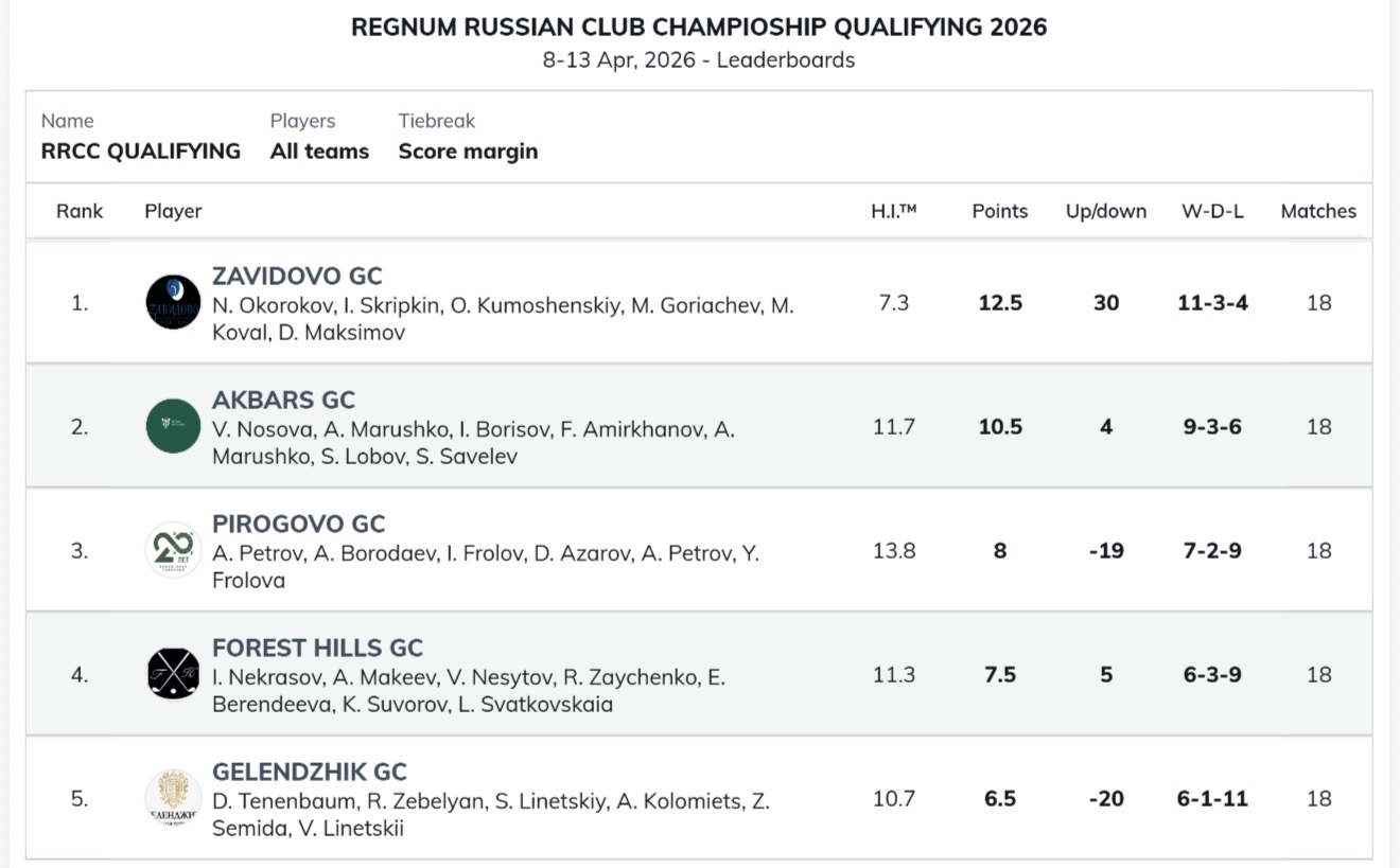 В отборочном квалификационном турнире участвовали сборные команды пяти гольф-клубов: Завидово, Ак Барс, Геленджик, Пирогово и Форест Хиллс.