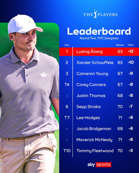 Тем временем единоличное лидерство захватил Людвиг Оберг (Ludvig Åberg), эффектно разделавшийся с первой девяткой местной арены. В начале второго раунда Обергу потребовалось всего четыре лунки, чтобы вписать в свою счетную карточку пять минусов. К началу второй девятки Людвиг успел оформить два игла и шел на семь ударов лучше пара, на оставшихся лунках юный швед сумел добрать еще два минуса, хотя ему и не удалось избежать богги.