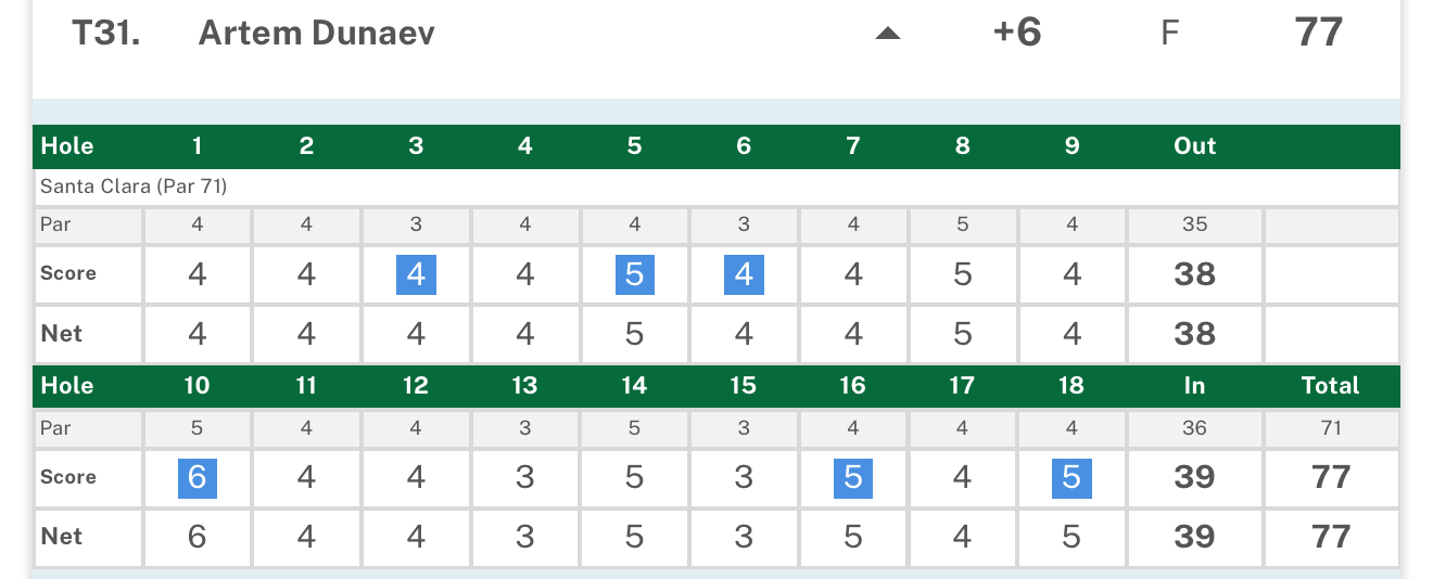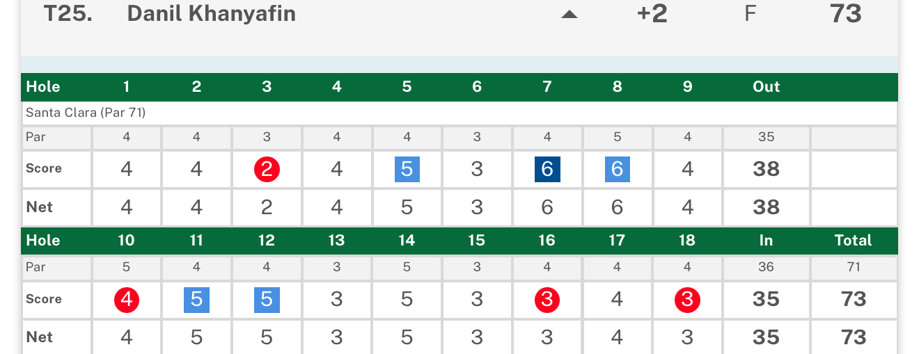 Второй результат у Даниэла Ханяфина - плюс 2 и Т25.