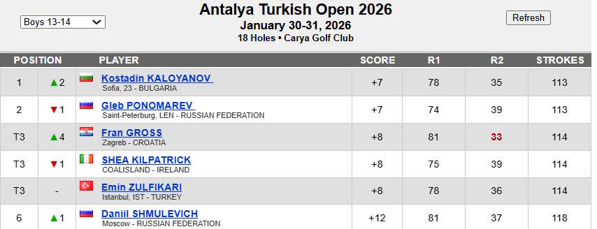 30-31 января в турецком Белеке проходил турнир Antalya Turkish Open 2026 - этап престижной международной юниорской серии U.S. Kids Golf. В тунире приняли участие юниоры в возрасте от 6 до 18 лет.