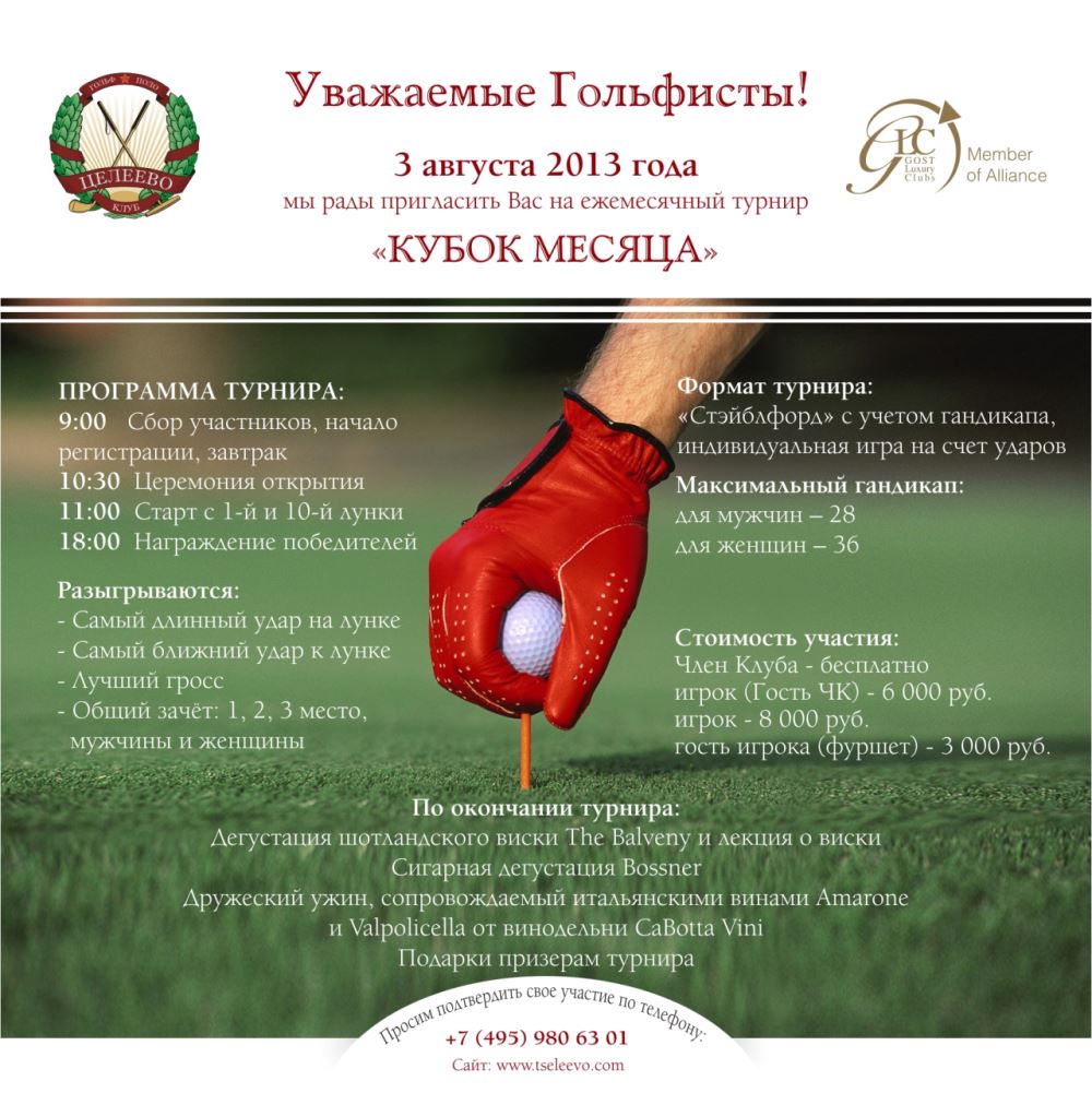 3 августа 2013 года мы рады пригласить Вас на ежемесячный турнир «КУБОК МЕСЯЦА»