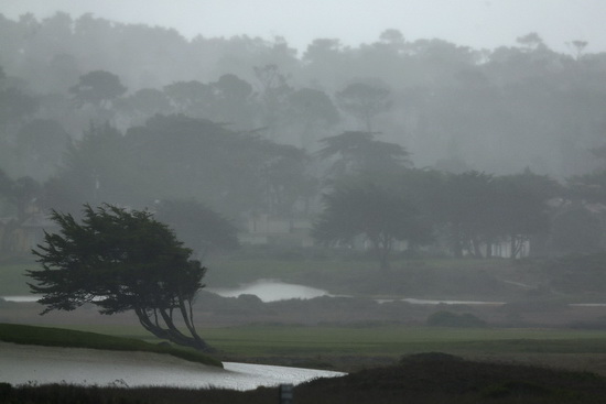 Сильнейший ливень в Monterey Peninsula Country Club. Фото: pgatour.com
