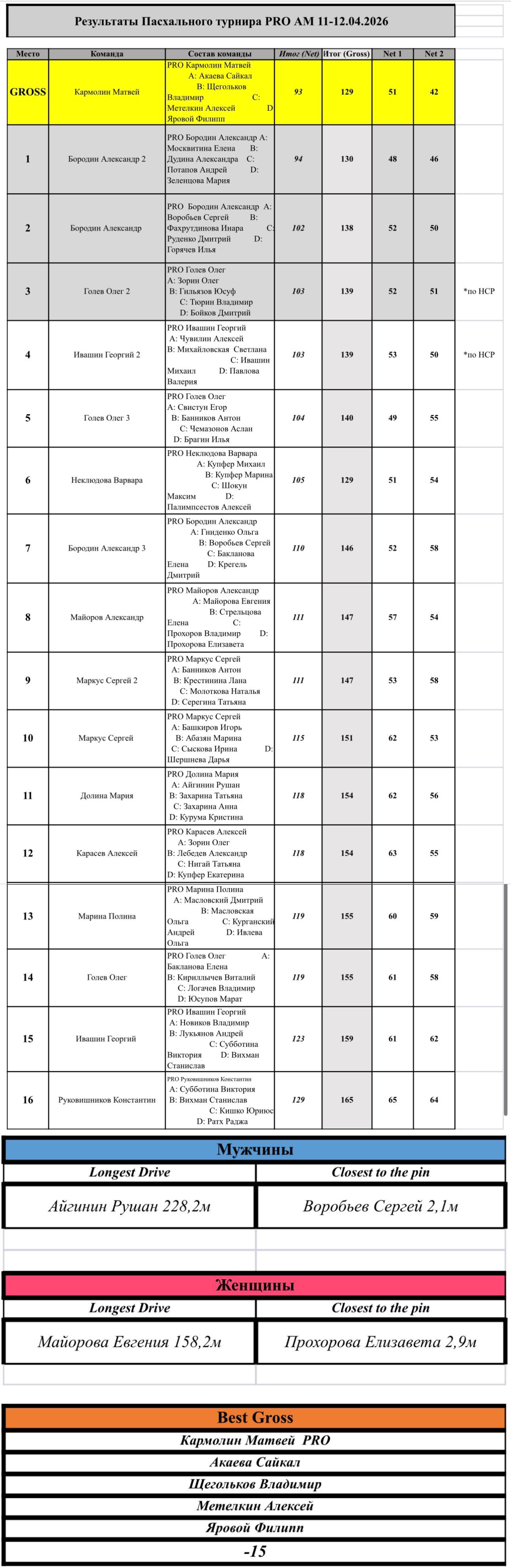 Пасхальный турнир в Гольф Центре на Аминьевском шоссе, итоги