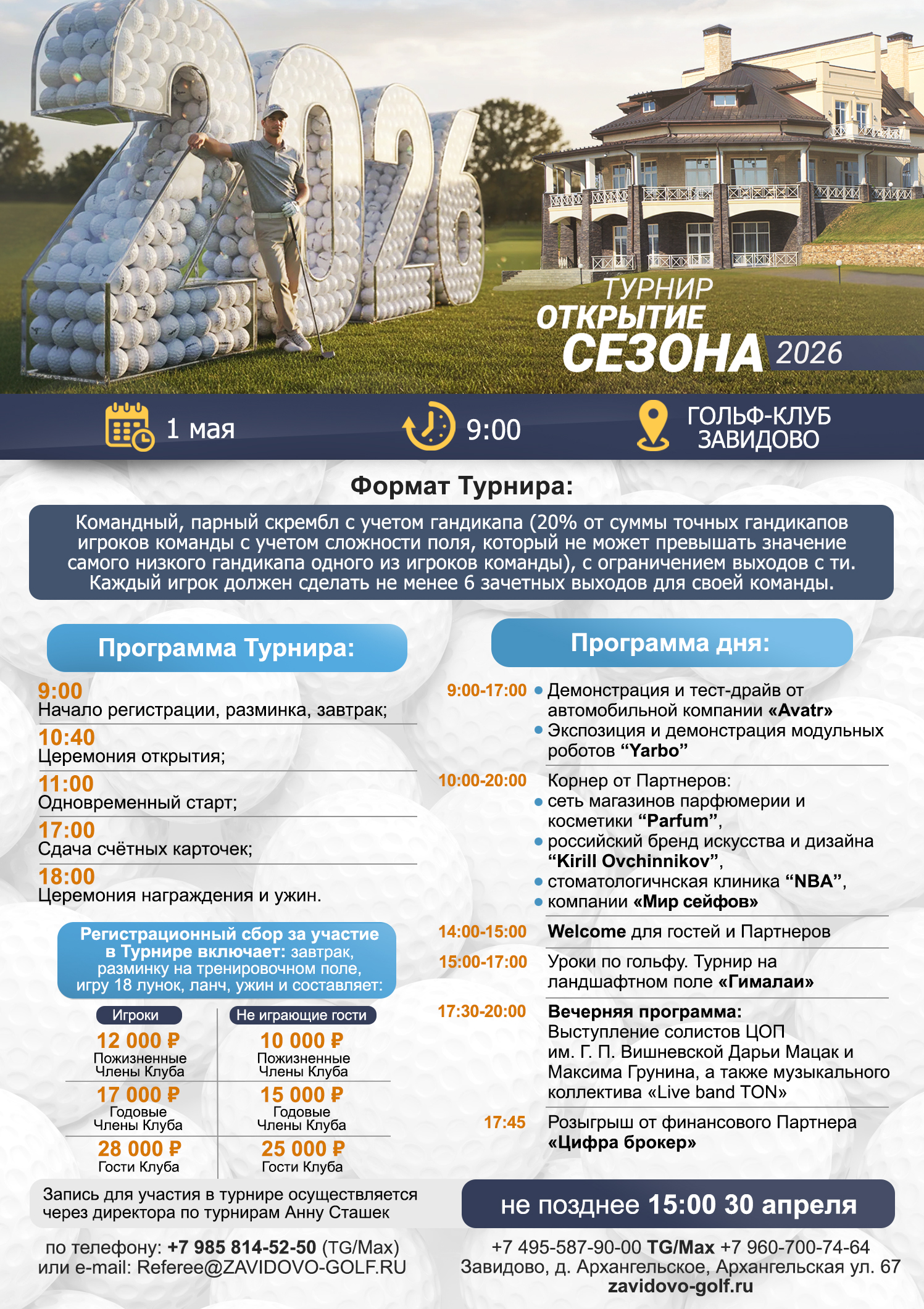 1 мая Турнир Открытие Сезона 2026 в Гольф-клубе Завидово.